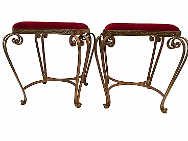 Pair of stools by Pierluigi Colli, Turin, 1950s, in gilded wrought iron and red velvet cardinal seat.