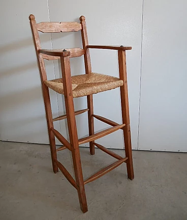 Large high chair in wood with armrests, 1940s