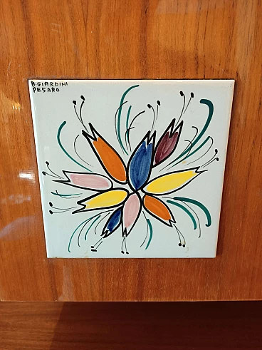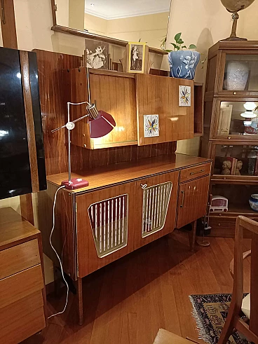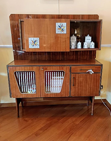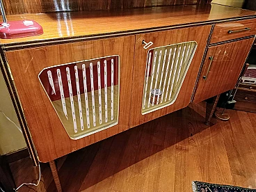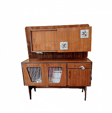 Sideboard with double body in teak, sliding doors and tile inserts signed Giardini. Cabinet preserved with original lacquering.