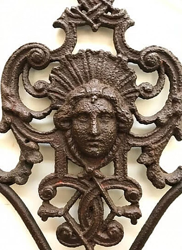 French wedding headboard, with original cast iron frieze