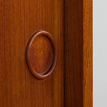Two bay teak wall unit with sliding doors cabinet by Kai Kristiansen for FM Mobler, 1960s 12