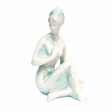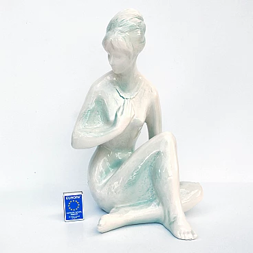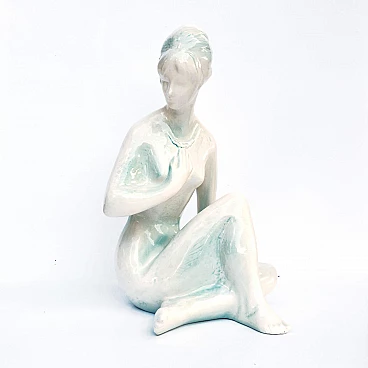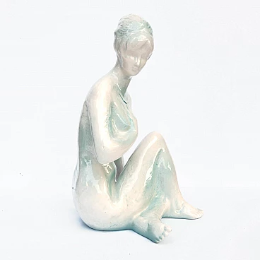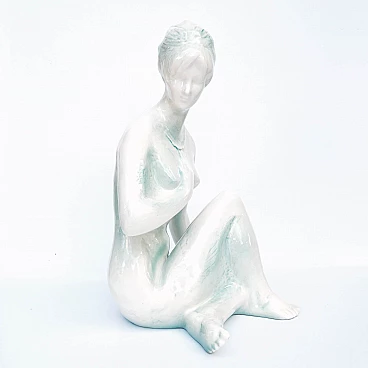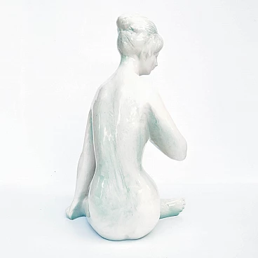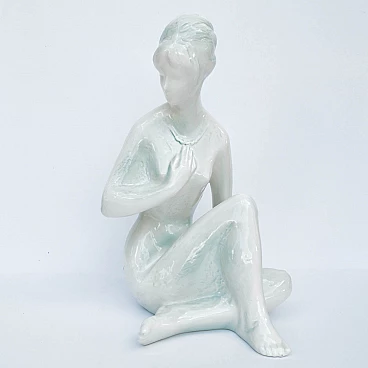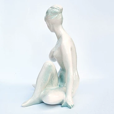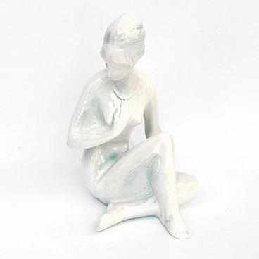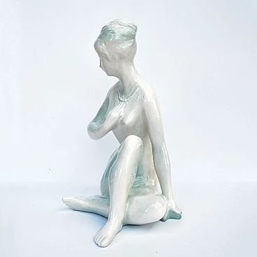 A beautiful, large porcelain figure in the Brusel style depicting a Female Nude from the Jihoker Bechyně Ceramics Works was handcrafted in Czechoslovakia in the 1960s. The figure was designed by the famous Czech artist Bohumil Kokrd.