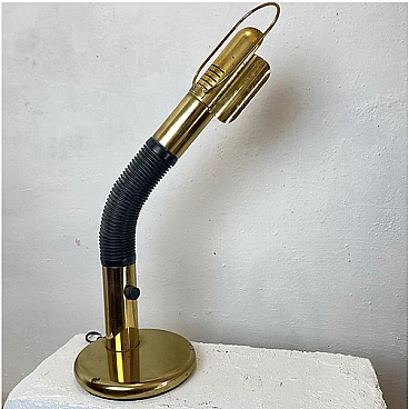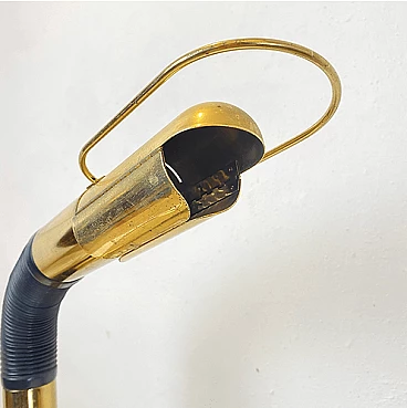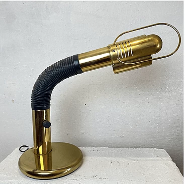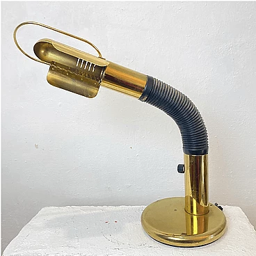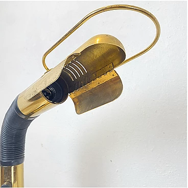 Brass table lamp with adjustable plastic arm by Gino Sarfatti for Targetti Sankey, 1970s. The on/off button is at the base of the arm.