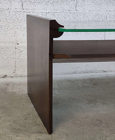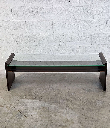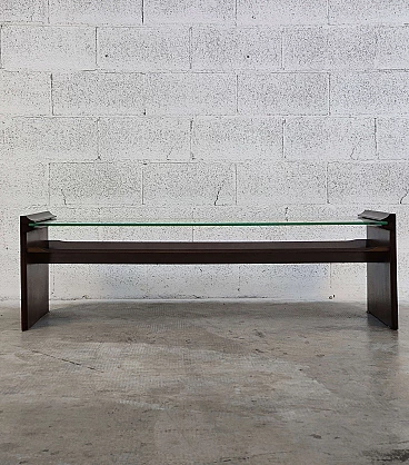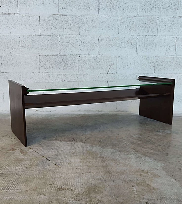 Acca coffee table with magazine rack designed by Japanese architect Kazuhide Takahama and produced by Gavina-Italy in the 1960s. Wooden frame and glass top with corners cut at 45°.