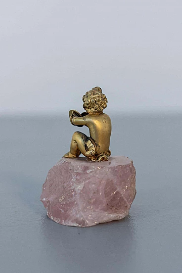 Gilded silver sculpture of a cherub on a rose quartz base, late 18th century 3