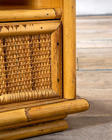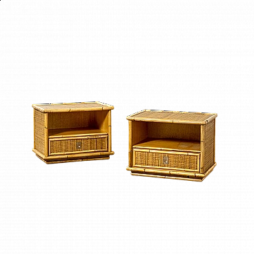 Pair of bamboo and wicker bedside tables by Vivai del Sud, 1960s. Equipped with an open compartment and a drawer.