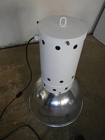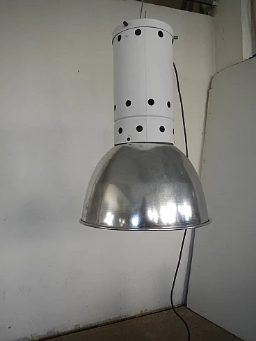 Industrial ceiling lamp in white metal and aluminium, 60s