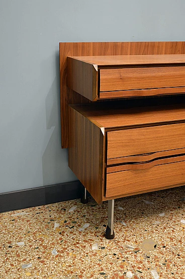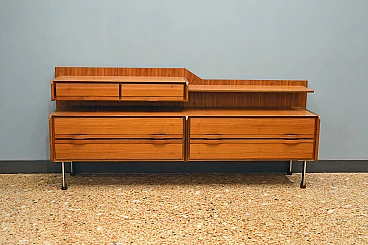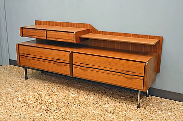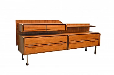 Teak sideboard or chest of drawers produced in the 1960s by La sorgente dei mobili in Arosio. The piece of furniture lends itself to various uses, both in the bedroom and in the living room also as a TV stand.