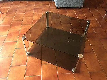 Coffee table with chrome-plated steel frame and smoked glass tops, 1970s