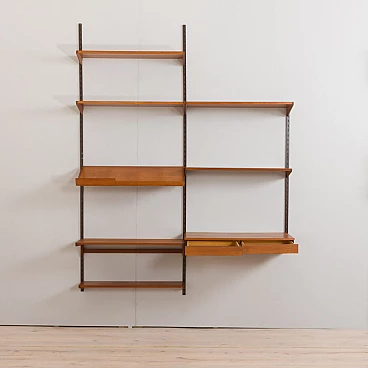 Each component is 86 cm wide and can be easily arranged as desired, thanks to a system of metal brackets that fit into the rails. The set is in excellent vintage condition with minimal signs of wear, and has been preserved with Danish oil.