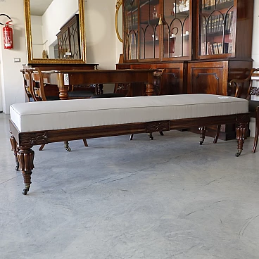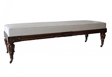 Victorian upholstered mahogany bench with fluted and carved legs, 19th century 1