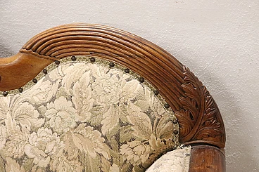 Valuable antique walnut sofa from the Charles X period, circa 1825. The sofa is characterised by its classic boat shape with refined carving decoration on the front. A sofa of extreme elegance, perfect in any room of the house, from the entrance hall to the bedroom to the living room. The sofa is in need of conservative restoration, in good wooden condition, but we recommend reupholstering and fabric replacement. We advise you to take a good look at all the attached photos in detail. Offered at an excellent negotiable price, we invite you to send us your purchase proposals, we will gladly evaluate them. Height 111 cm, width 181 cm, depth 60 cm, seat height 50 cm. Professional packaging, insured shipping by courier, delivery by appointment only on street level, no porterage on floors.