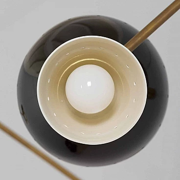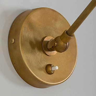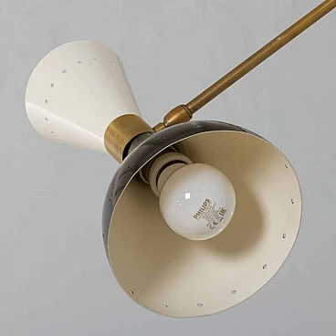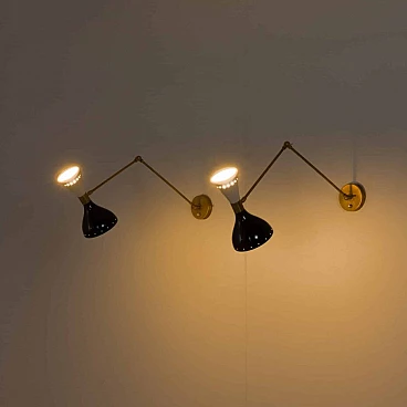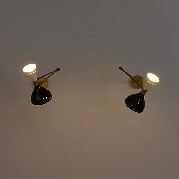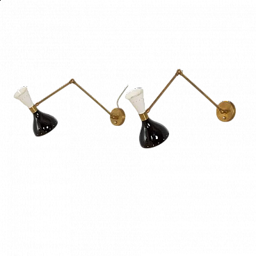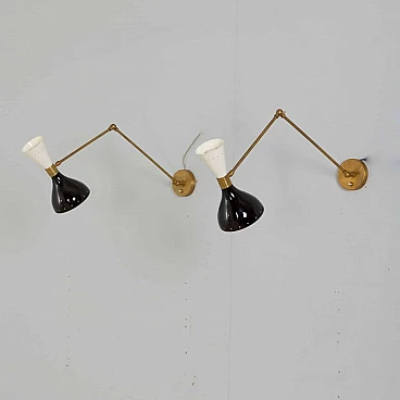 Pair of adjustable brass wall sconces with black and white lacquered lampshades, 1970s