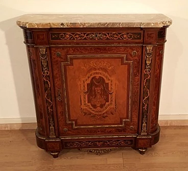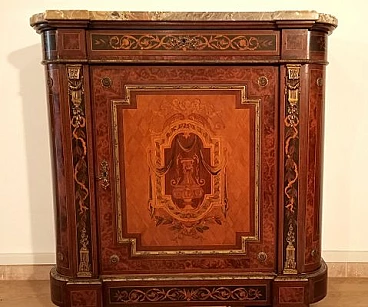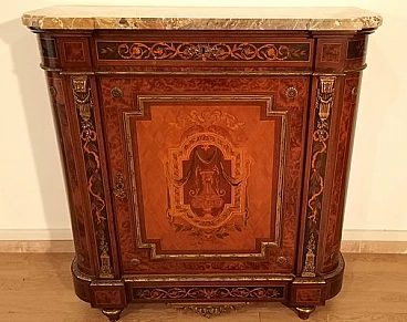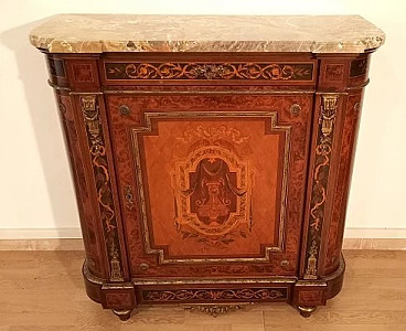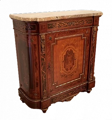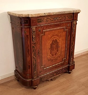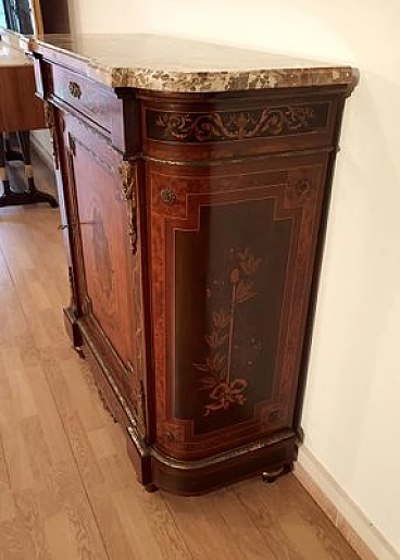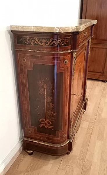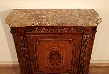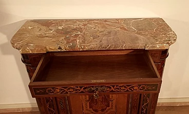 Inlaid wood sideboard with marble top, 1960s