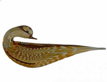 Statuette of a bird (dove) in Murano glass by Gino Cenedese, 1960s/'70s. Bird in resting position in clear glass with amber-coloured feather motif. Hardly any signs of wear.