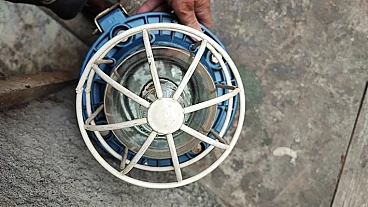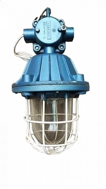 Polish industrial cast iron and glass hanging lamp, 1950s