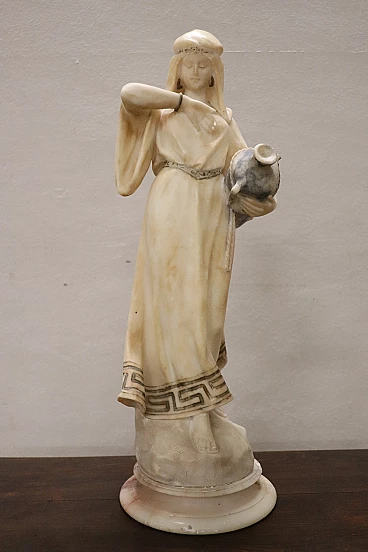 Carrara marble sculpture depicting a water carrier, first decades of the 20th century. Two flaws are noted: a finger and an amphora handle are missing.