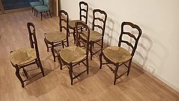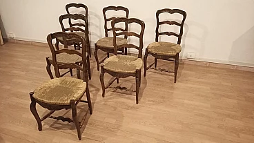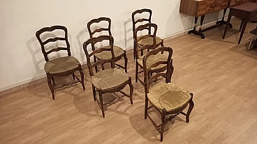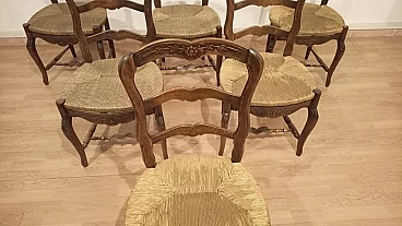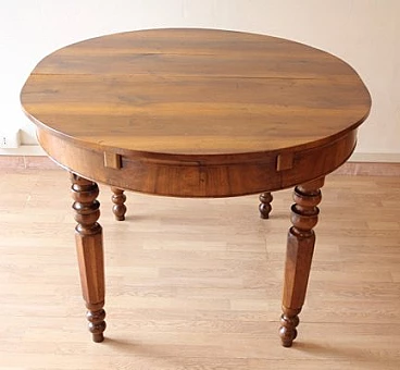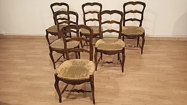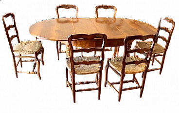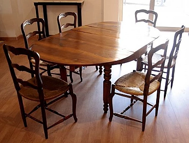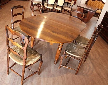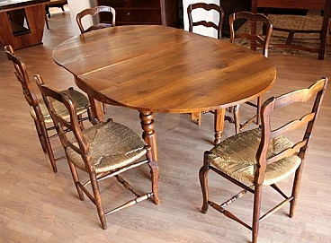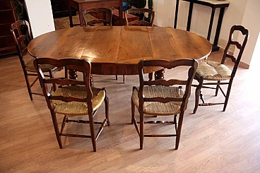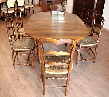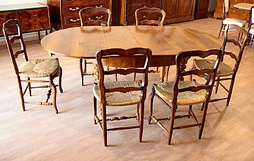 6 Oak chairs and walnut extendable table, 19th century