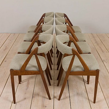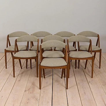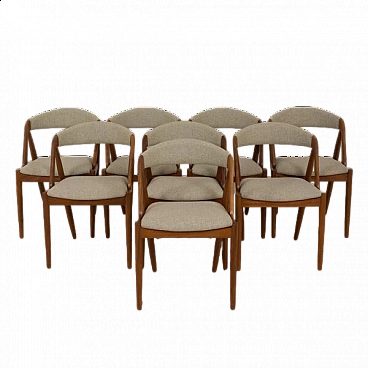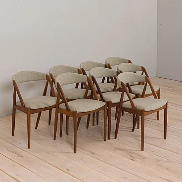 8 Teak dining chairs upholstered in wool by Kai Kristiansen, 1960s