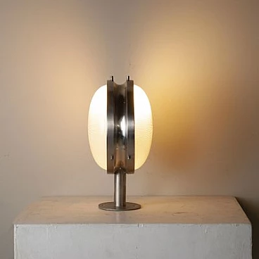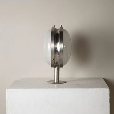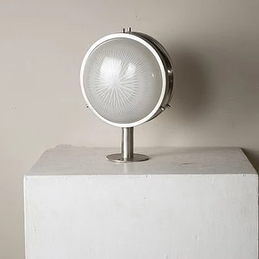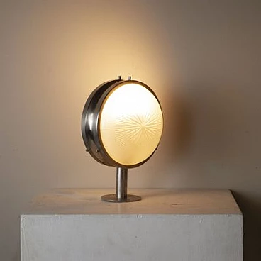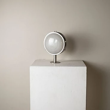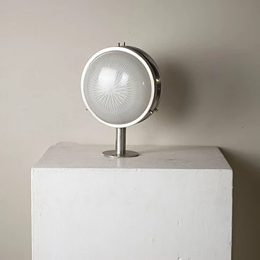 Gamma wall light by Sergio Mazza for Artemide, 1960s. Nickel-plated brass structure and molded glass light diffuser. Working. European plug (up to 250V).
