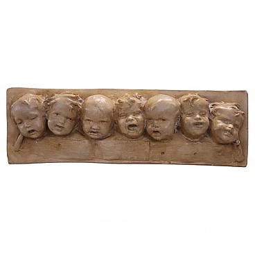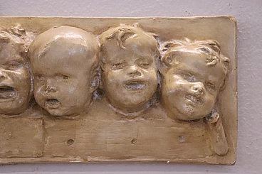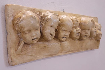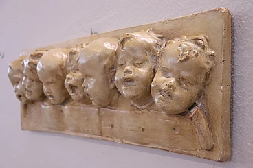 Fine Italian plaster sculpture. Adorable bas-relief with cherub heads, each with a different facial expression. The plaster has been painted. Manufactured around the end of the 20th century. However, we advise you to look closely at all the attached photos. Proposal at an excellent price, however negotiable, we invite you to send us your purchase proposals and we will evaluate them with pleasure.