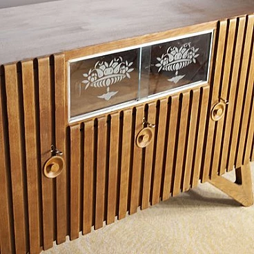 Light oak sideboard with two side doors in the style of Carlo Mollino, 1950s