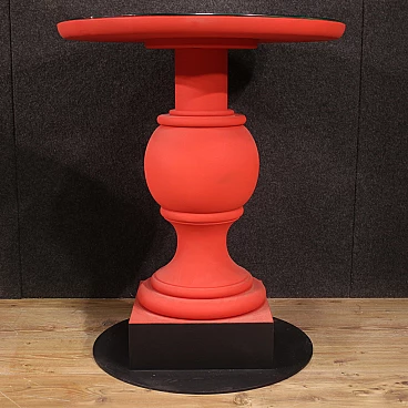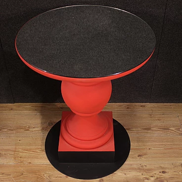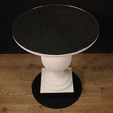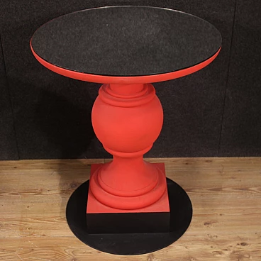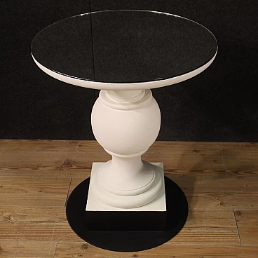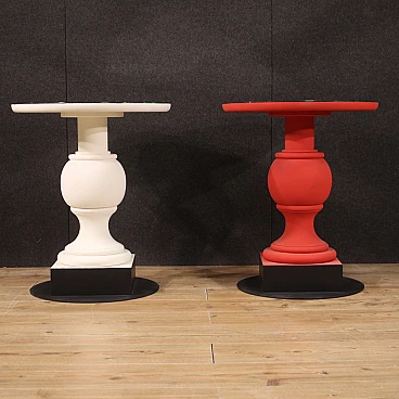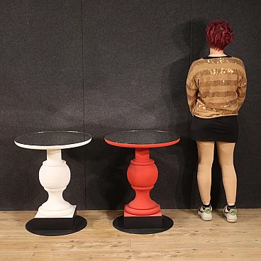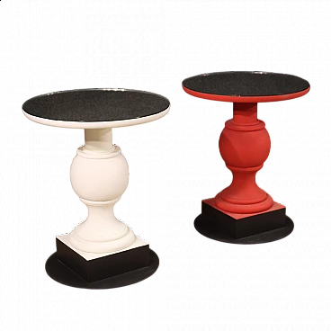 Pair of wooden and iron tables with mirror top, 70s