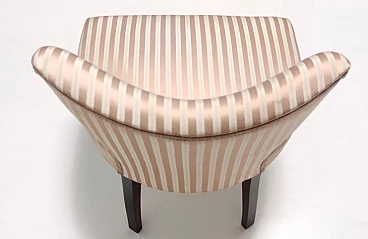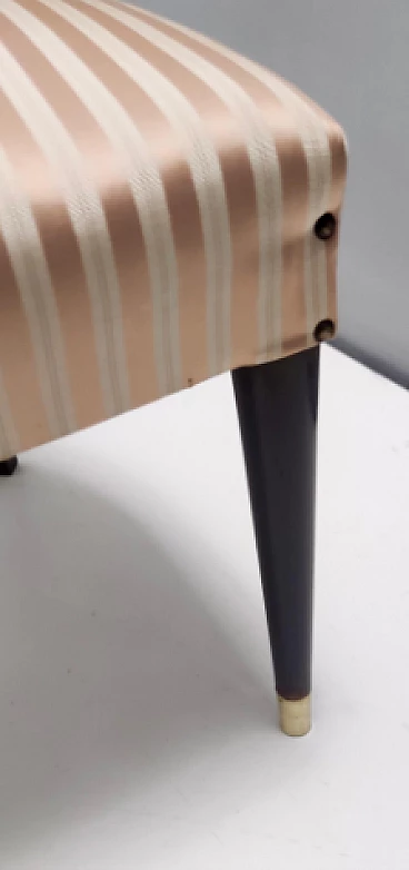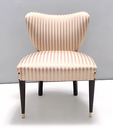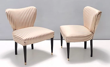 Pair of chairs attributed to Carlo Enrico Rava, 1950s. Structure in solid ebonized walnut, tips in brass and upholstery in pinkish beige/light brown satin. Excellent original condition with no rips or stains; they may have slight traces of use.