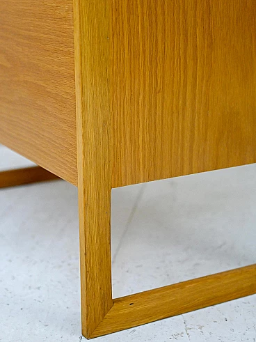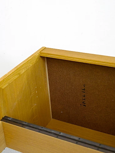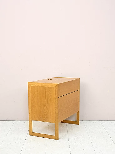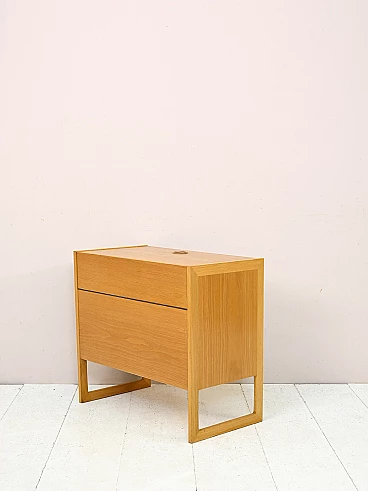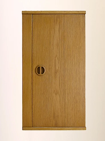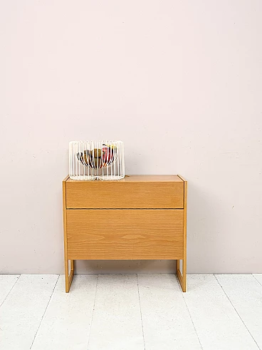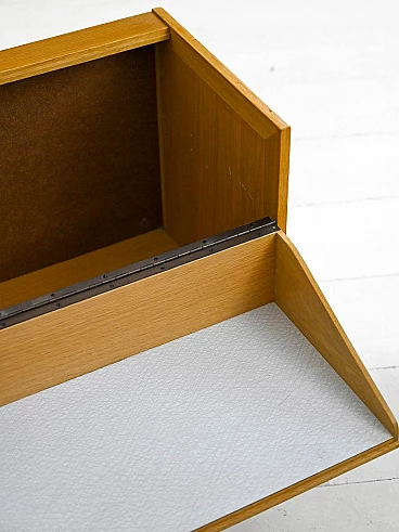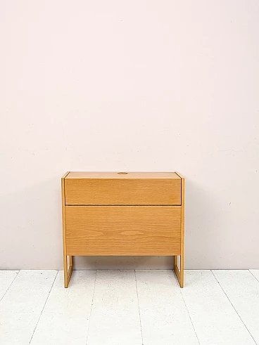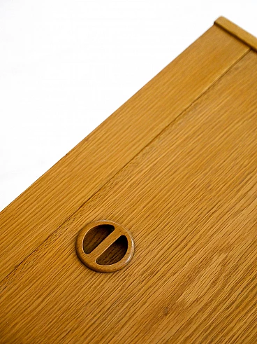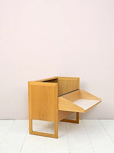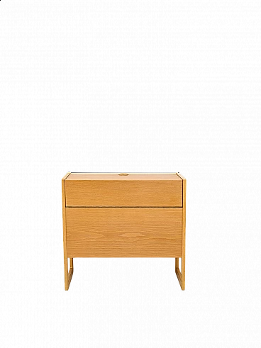 Scandinavian oak bar cabinet/storage cabinet, 1960s. It has a flap top; the inner compartment is roomy and ideal for use as a bar compartment or even for storing other items. A conservative restoration has been done; it may show signs of aging.