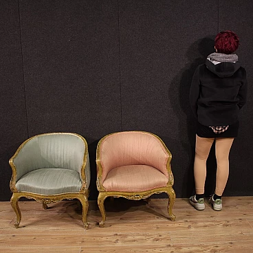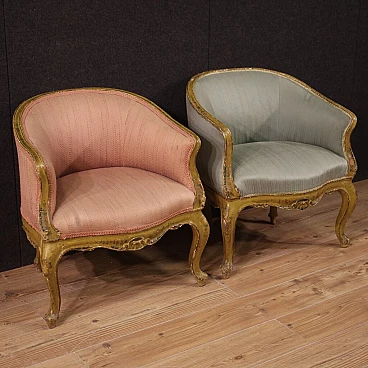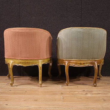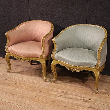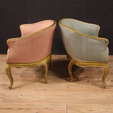Pair of Venetian lacquered and painted wood armchairs