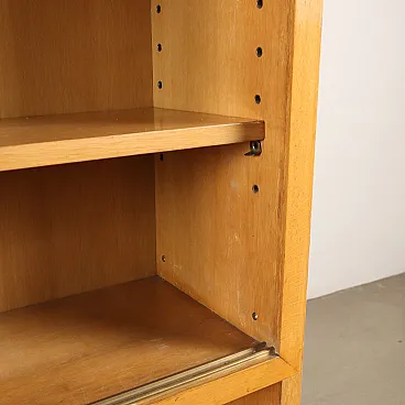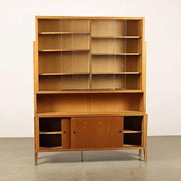 Wooden bookcase with glass sliding doors and storage cabinet, 1950s