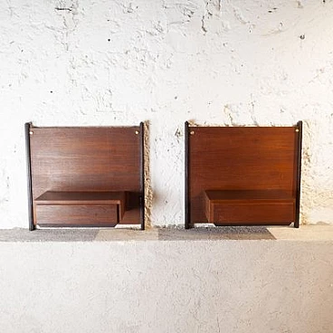 Pair of teak wall-mounted bedside tables with drawer attributed to Ico & Luisa Parisi, Italy 1960s.