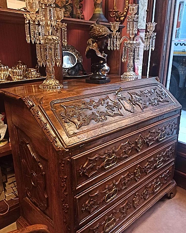 Wood flap desk with carved decoration, 17th century