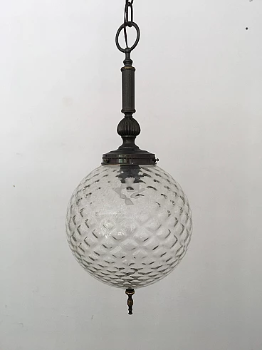 Bronze and glass chandelier in the style of Luigi Caccia Dominioni for Azucena, 1960s