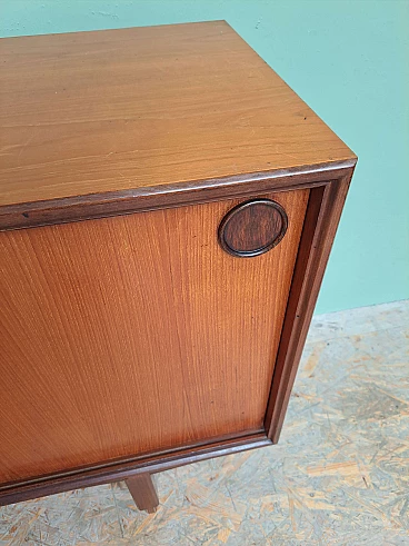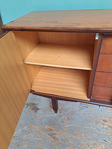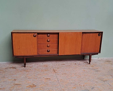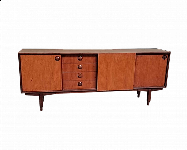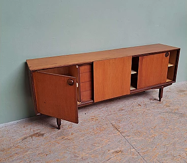 Original Danish-style sideboard from the 1960s made entirely of teak. Consists of a chest of drawers, two sliding doors and a hinged door. Very good state of preservation with normal signs of time.