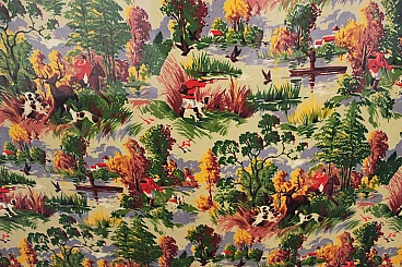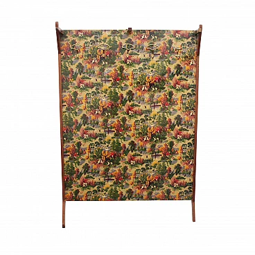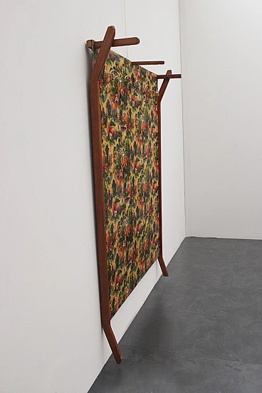 Teak wall clothes hanger with hunting scene, Italy, 50s