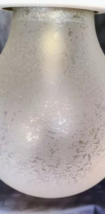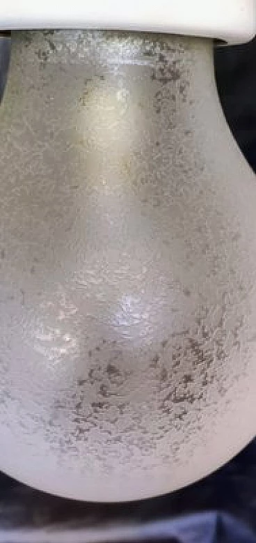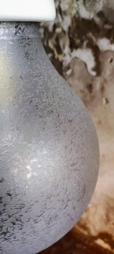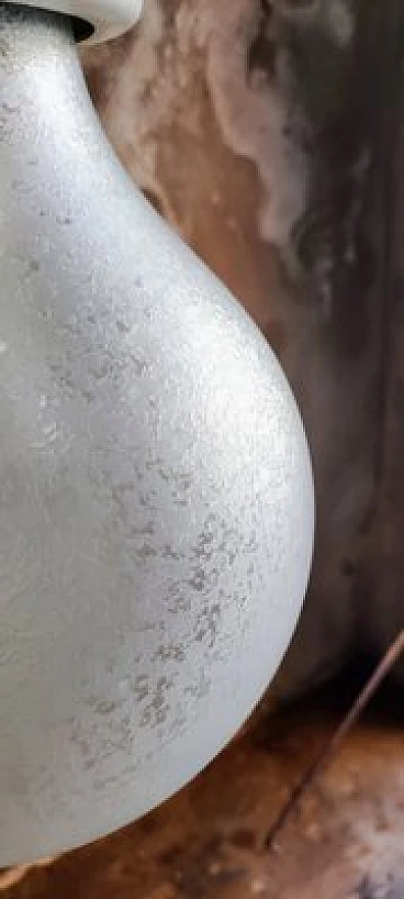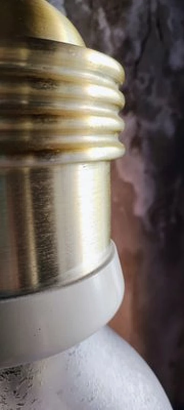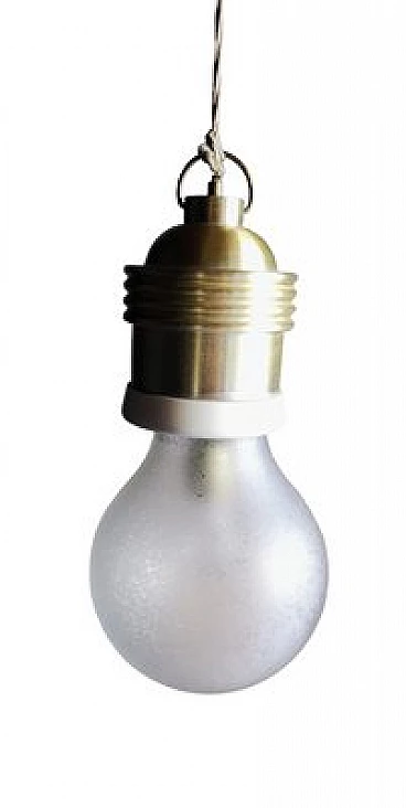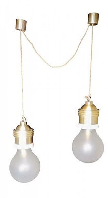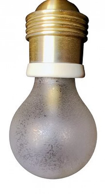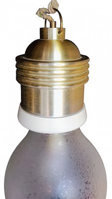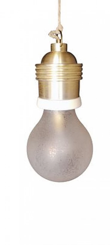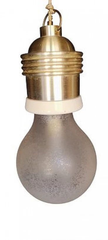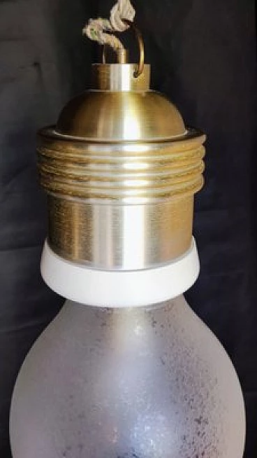 Pair of pendant lamps attributed to Fontana Arte, model no. 2406, 1960s. Glass bulbs with "corroded" finish and brushed brass lampholder. Original suspension cord and brass canopies. Literature: Fontana Arte Catalogue no. 10 (1967), p. 131.