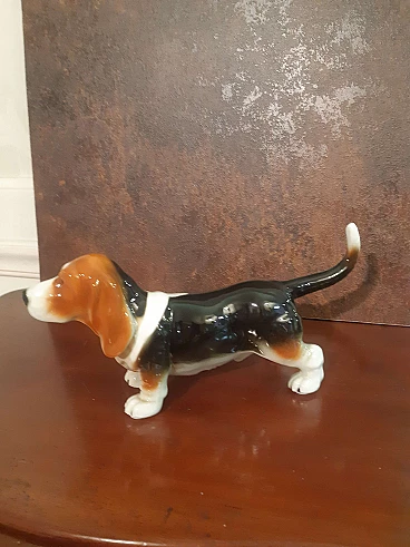 Basset Hound dog figurine in Neundorf porcelain, 1940s
