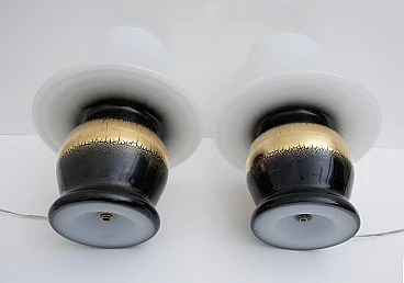 Pair of Murano glass table lamps with gilded band, 1970s