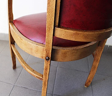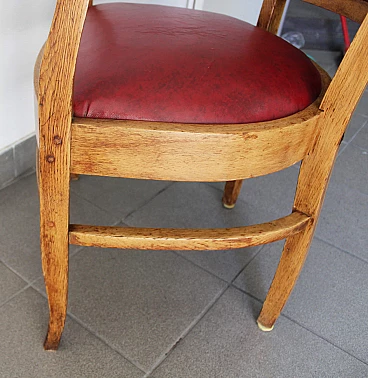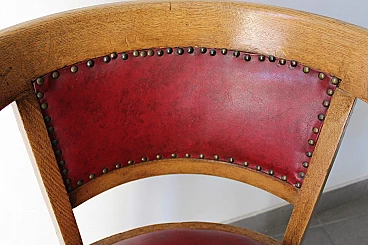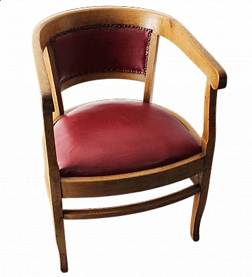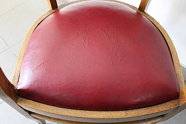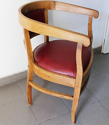 English wood and burgundy leather armchair, 1970s
