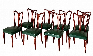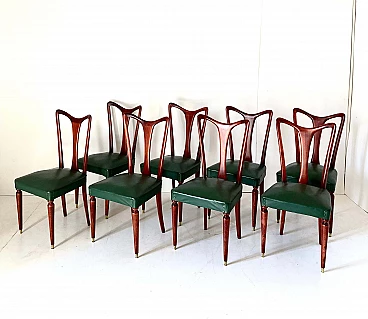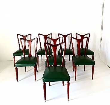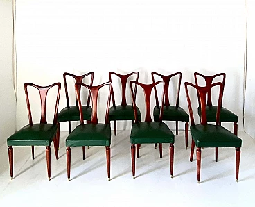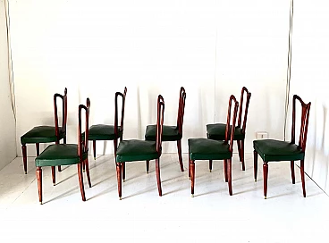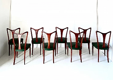 Rare curved walnut dining chair set designed by Guglielmo Ulrich in the 1940s. Made in Italy. The eight chairs have been completely restored by a professional woodworker as follows: the wood has been polished to highlight the grain and the beautiful and unique brown colour with shades of cherry.