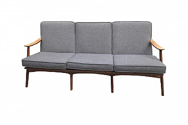 Divano danese a tre posti di Arne Vodder per Glostrup Mobelfabrik negli anni '60, con struttura e schienale a stecche in legno teak mosso e con rivestimento in tessuto grigio.
