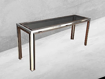Chromed metal, brass and plexiglass console by Romeo Rega, 1970s