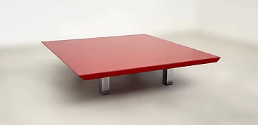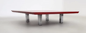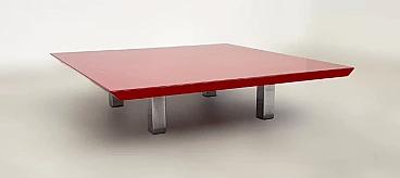 Red lacquered wood and metal coffee table by Vittorio Introini for Saporiti, 1970s