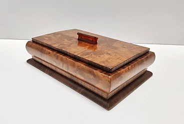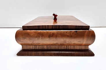 Art Deco walnut and walnut-root box, 1930s-40s. It has been recently restored and can be considered in excellent condition.