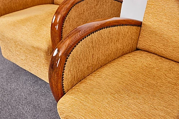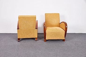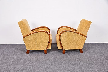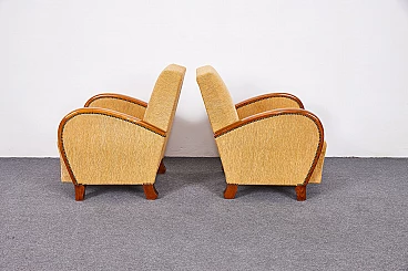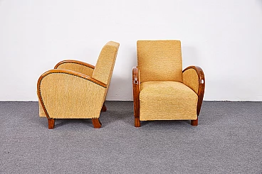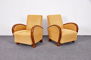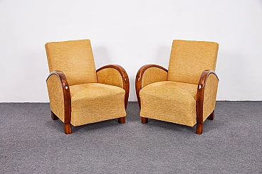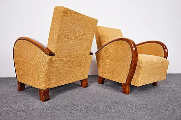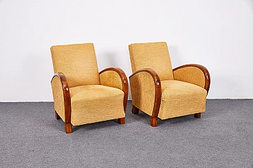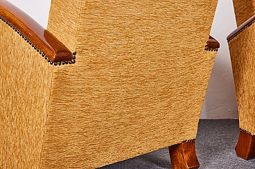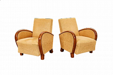 French Art Deco armchairs from the 1930s. Original springs but refurbished. The armchairs were restored 15 years ago, when they also received new corduroy upholstery. It is a little worn, but not spectacular. The armrests of the armchairs have been re-treated with shellac. H 88 cm, W 68 cm, D 78 cm.