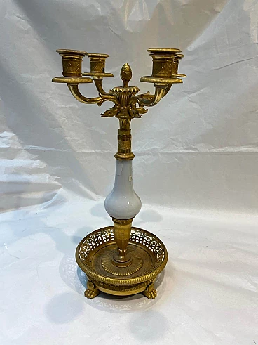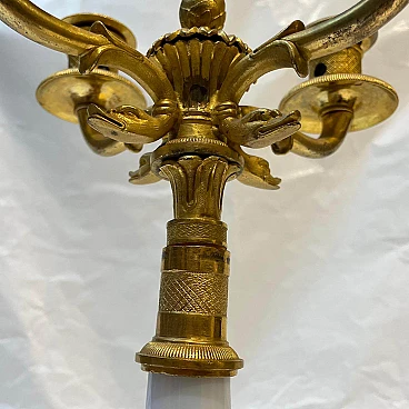 Gilded and chiseled bronze candelabra with white glass detail, 1860
