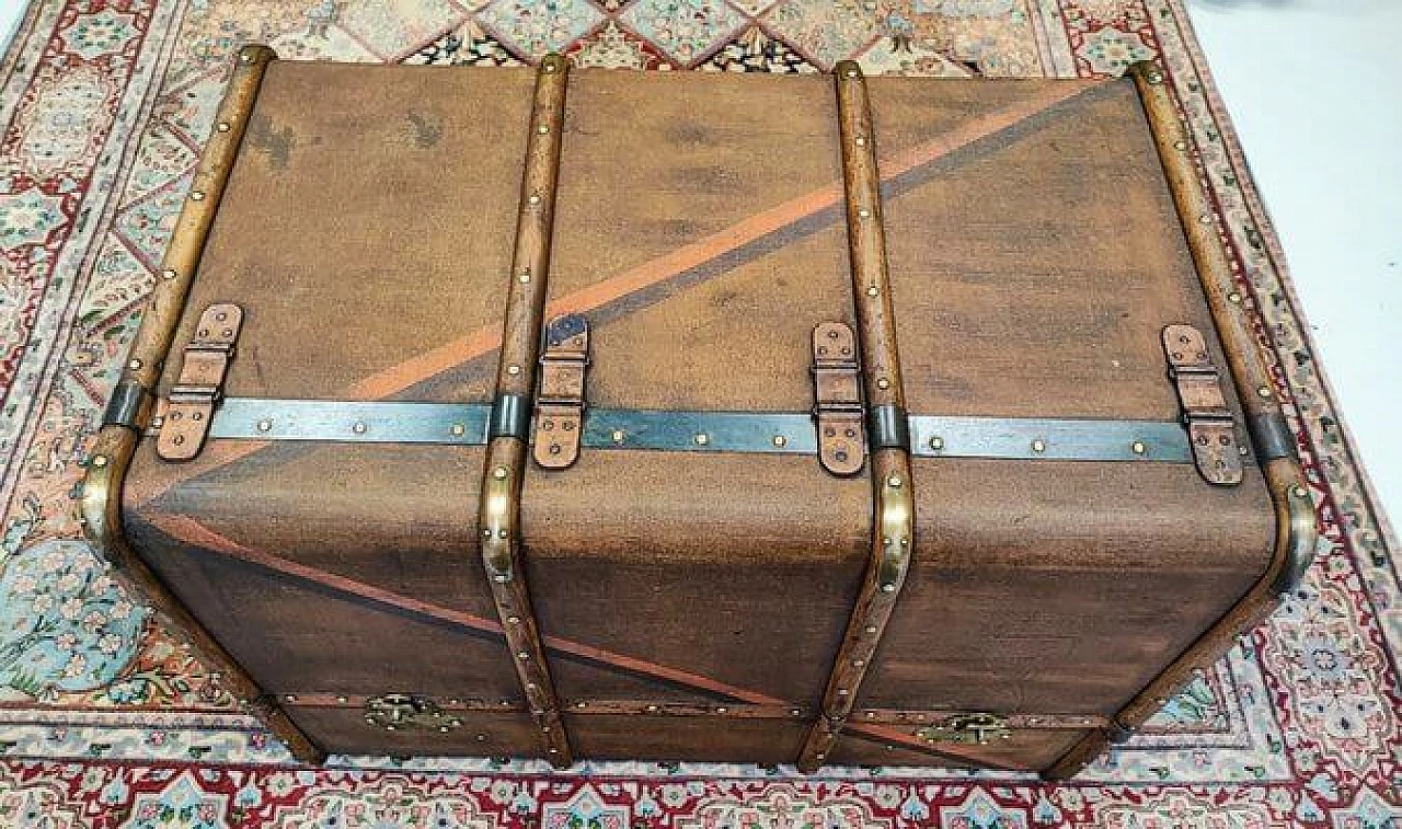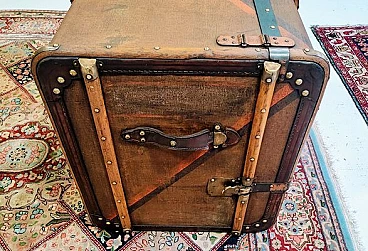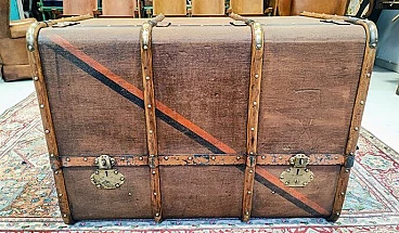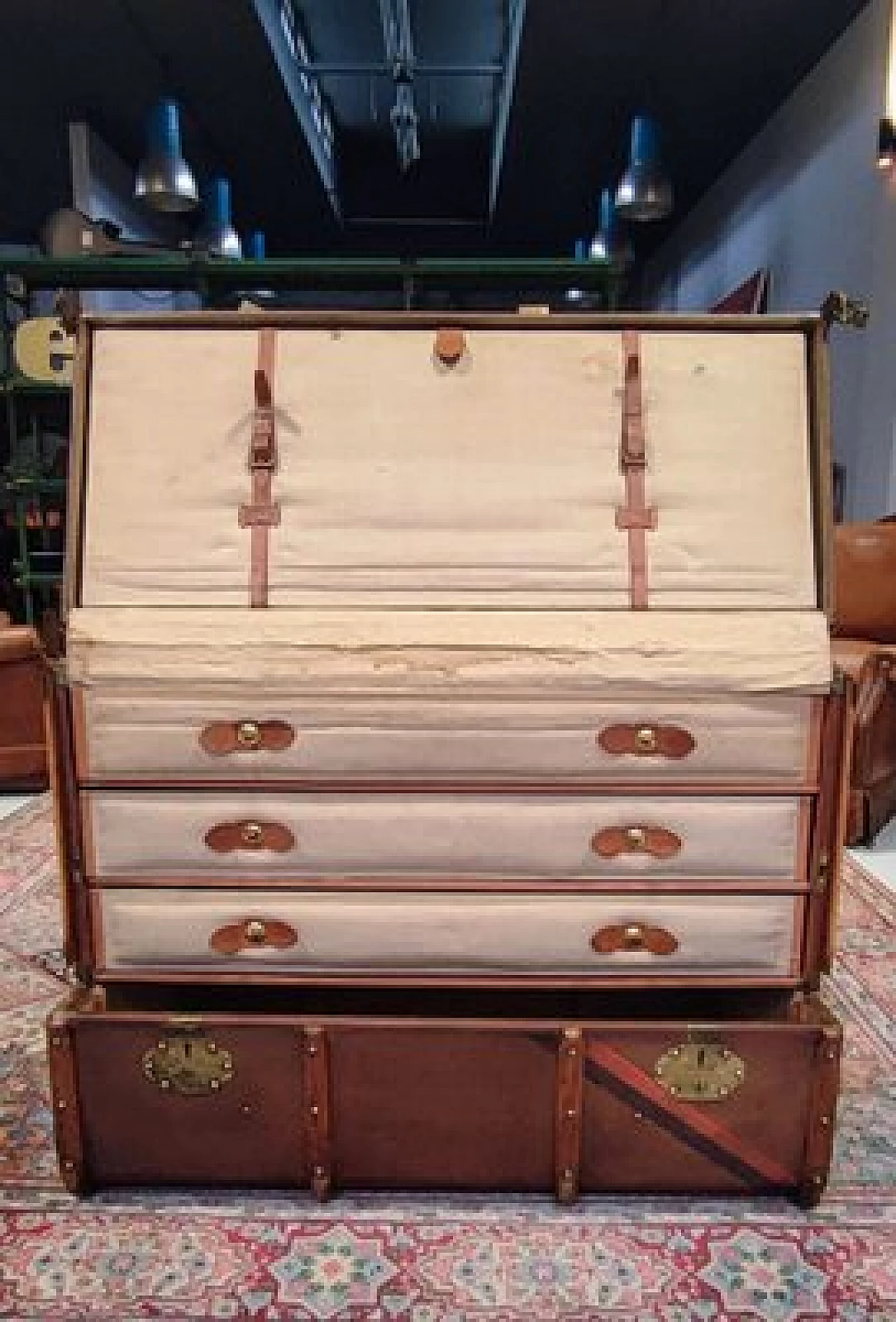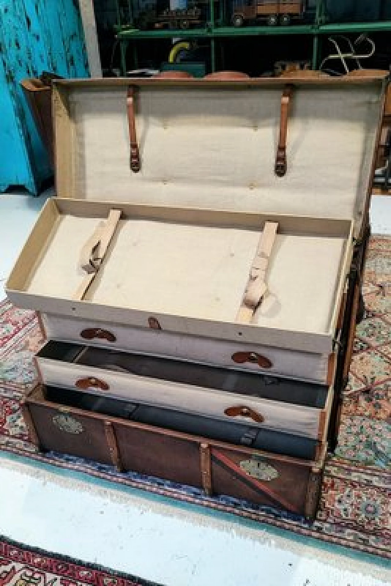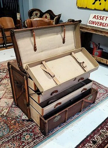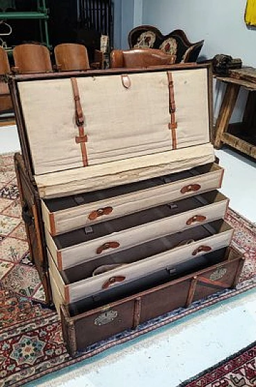 Italian travel trunk from the 1940s, inside six drawers lined with fabric of the period.