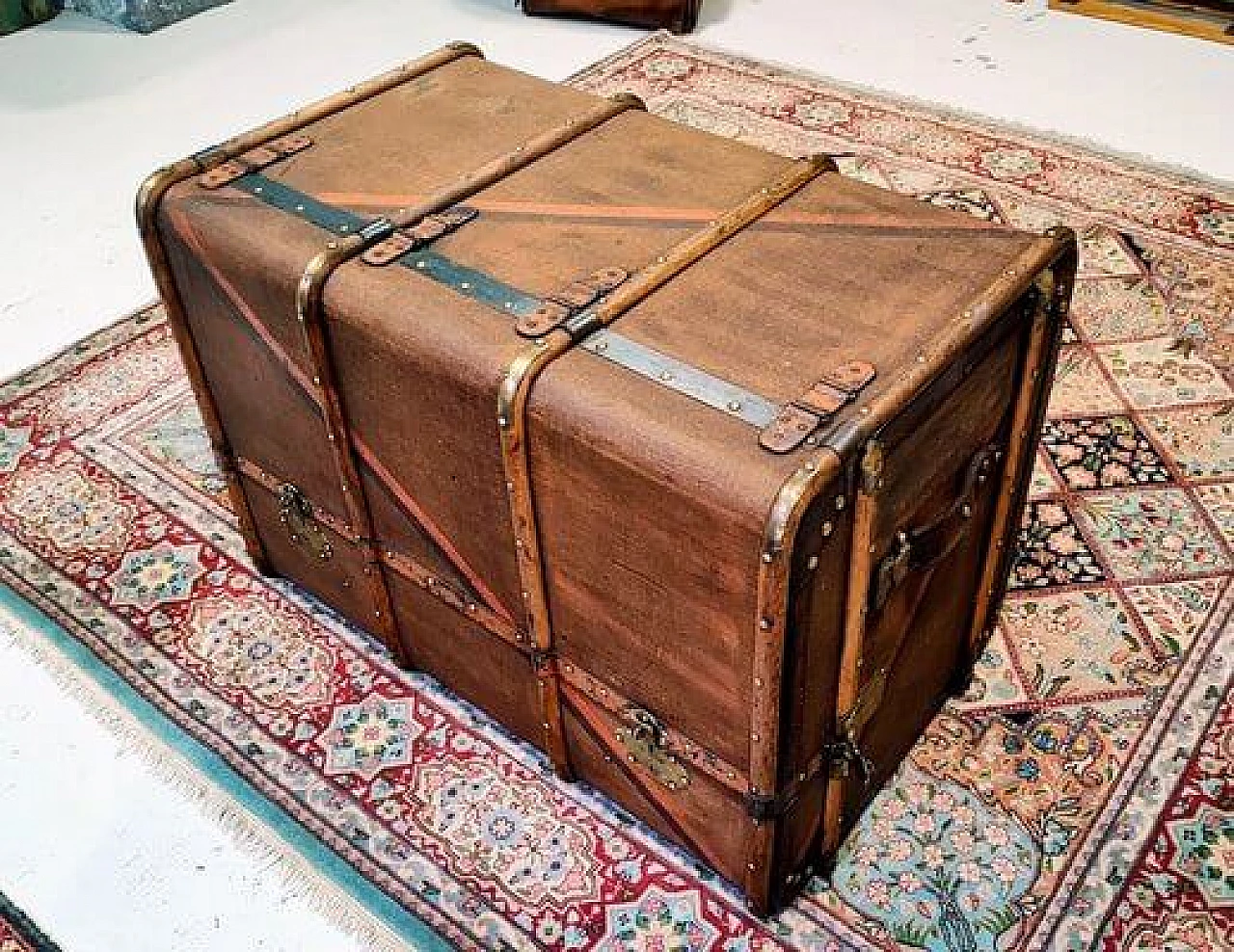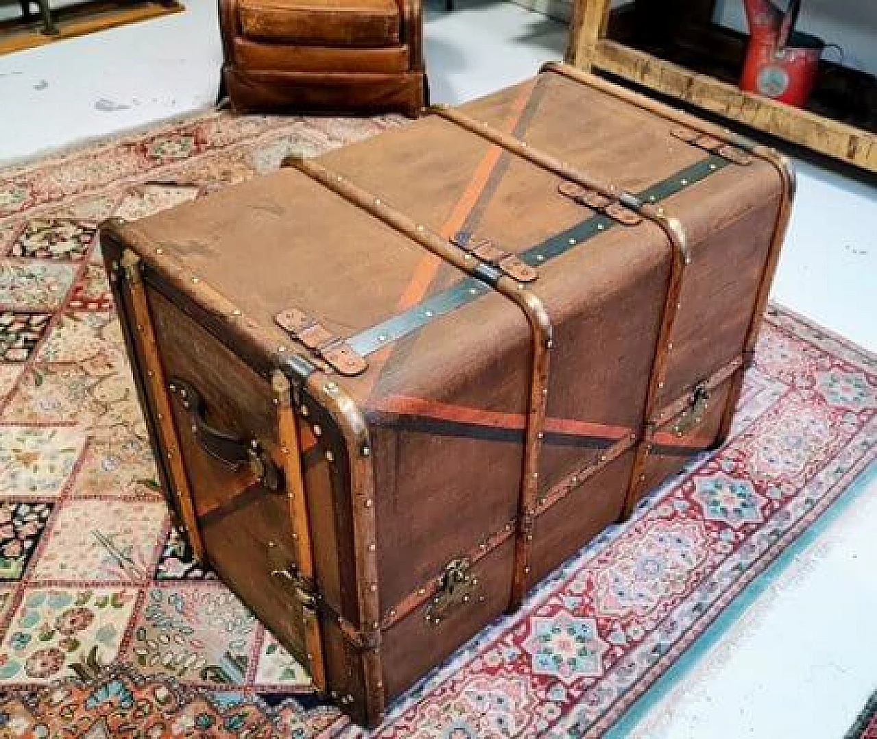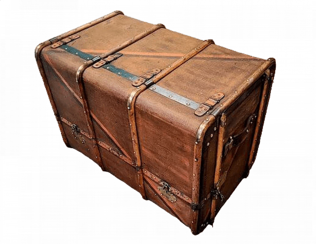 Italian travel trunk from the 1940s, inside six drawers lined with fabric of the period.