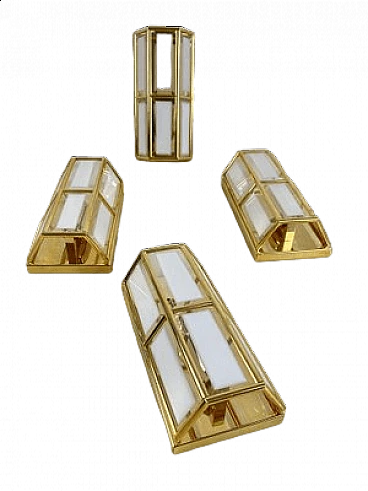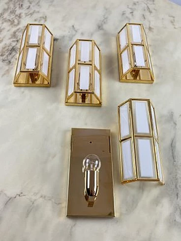 Four vintage brass and glass wall lamps, Italy, 1980s. Beautiful and elegant, they are intact and in working order.